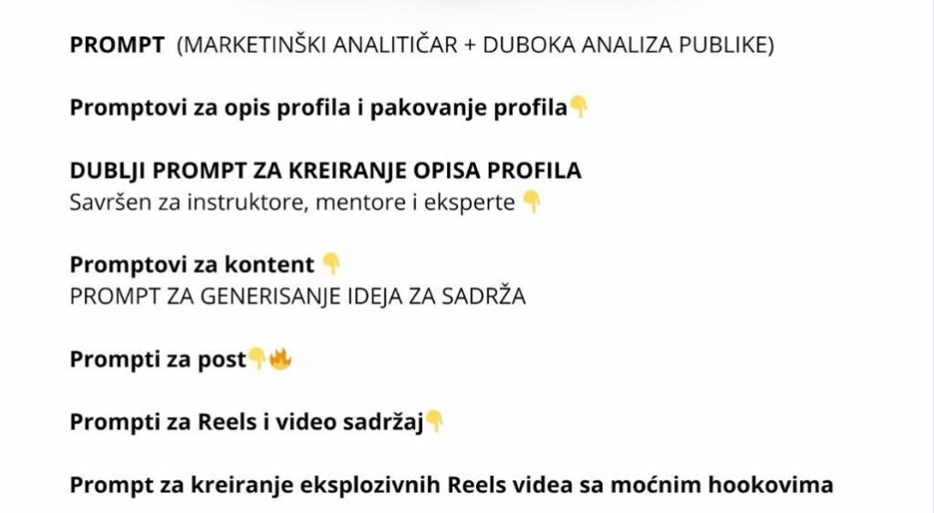 ✅ kako da koristiš gotove primere upita (promptove) za objave, Reels, story-je i promotivne tekstove